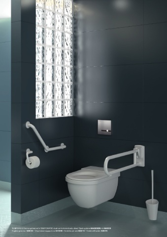 TEMPOFIX 3 frame system with TEMPOMATIC dual control electronic direct flush system 564005DE + 464000 Angled grab bar 5081N - Drop-down support rail 5164N - Toilet brush set 4051N - Toilet roll holder 4081N