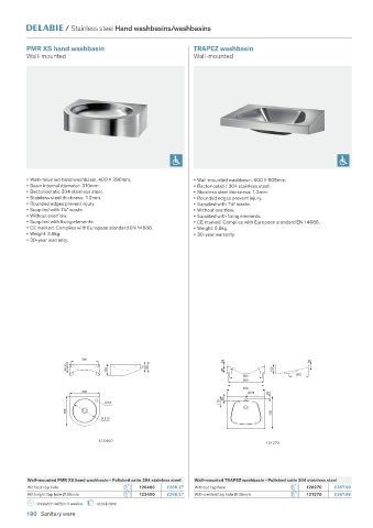 Wall-mounted PMR XS hand washbasin - Polished satin 304 stainless steel Wall-mounted TRAPEZ washbasin - Polished satin 304 stainless steel