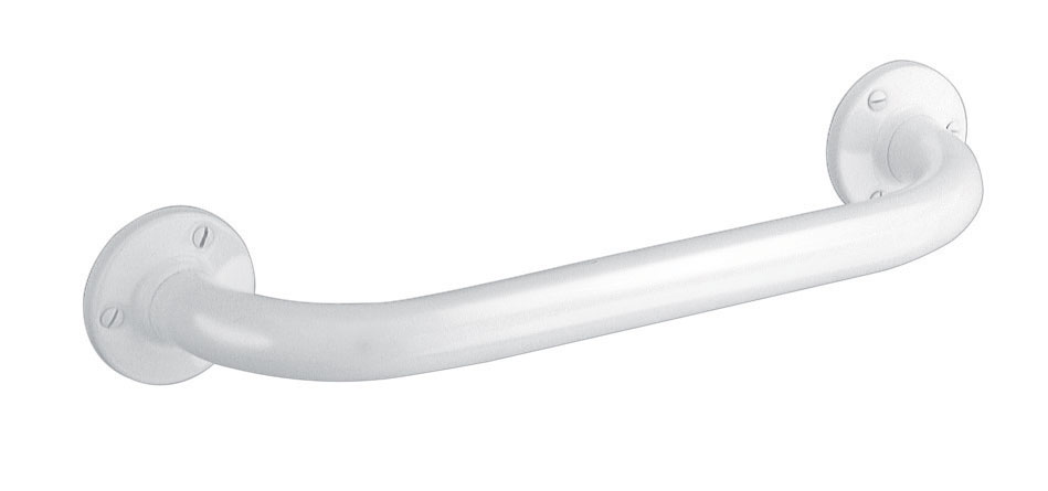 Grab bar made from white powder-coated stainless steel.