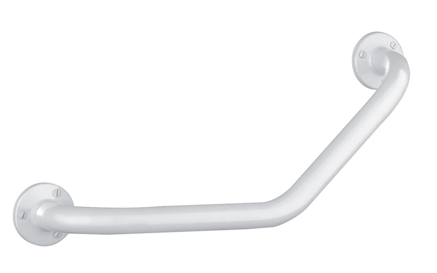 Angled grab bar made from white powder-coated stainless steel.