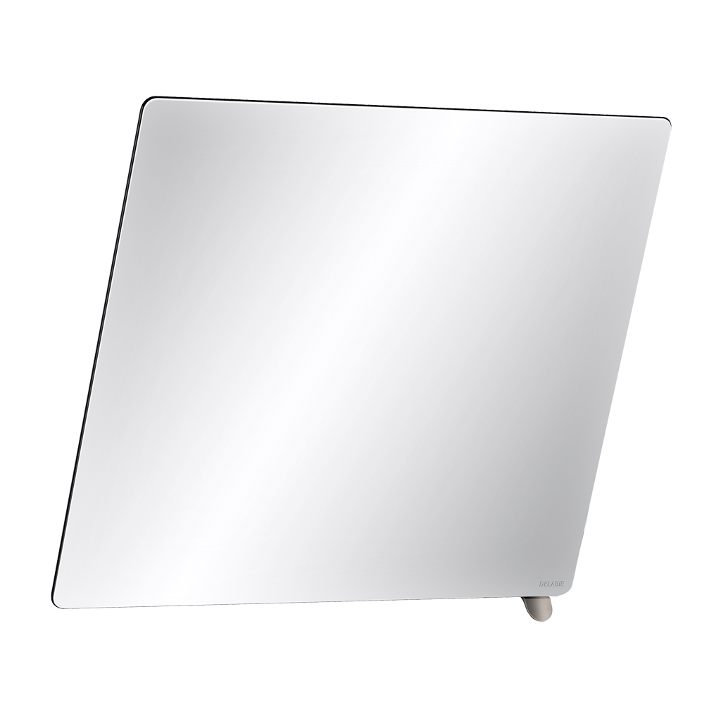 Tilting mirror with metallised anthracite tab handle.