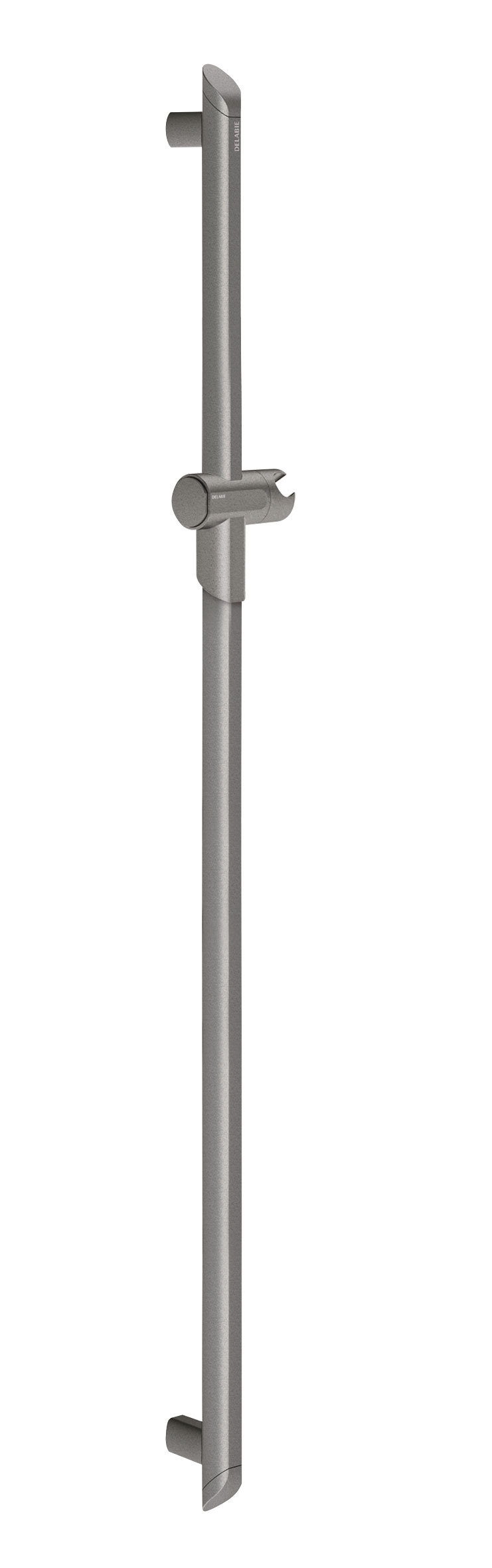 Metallised anthracite aluminium shower head holder with ergonomic locking ring.