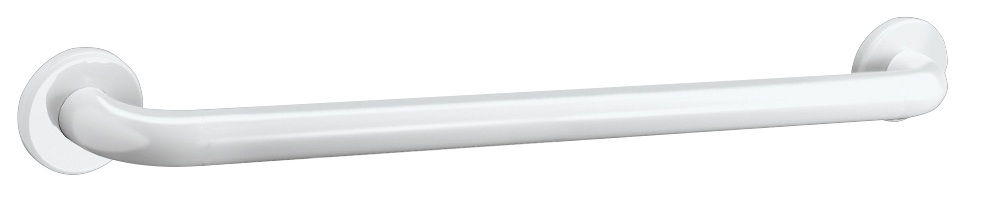 Grab bar made from white powder-coated stainless steel.