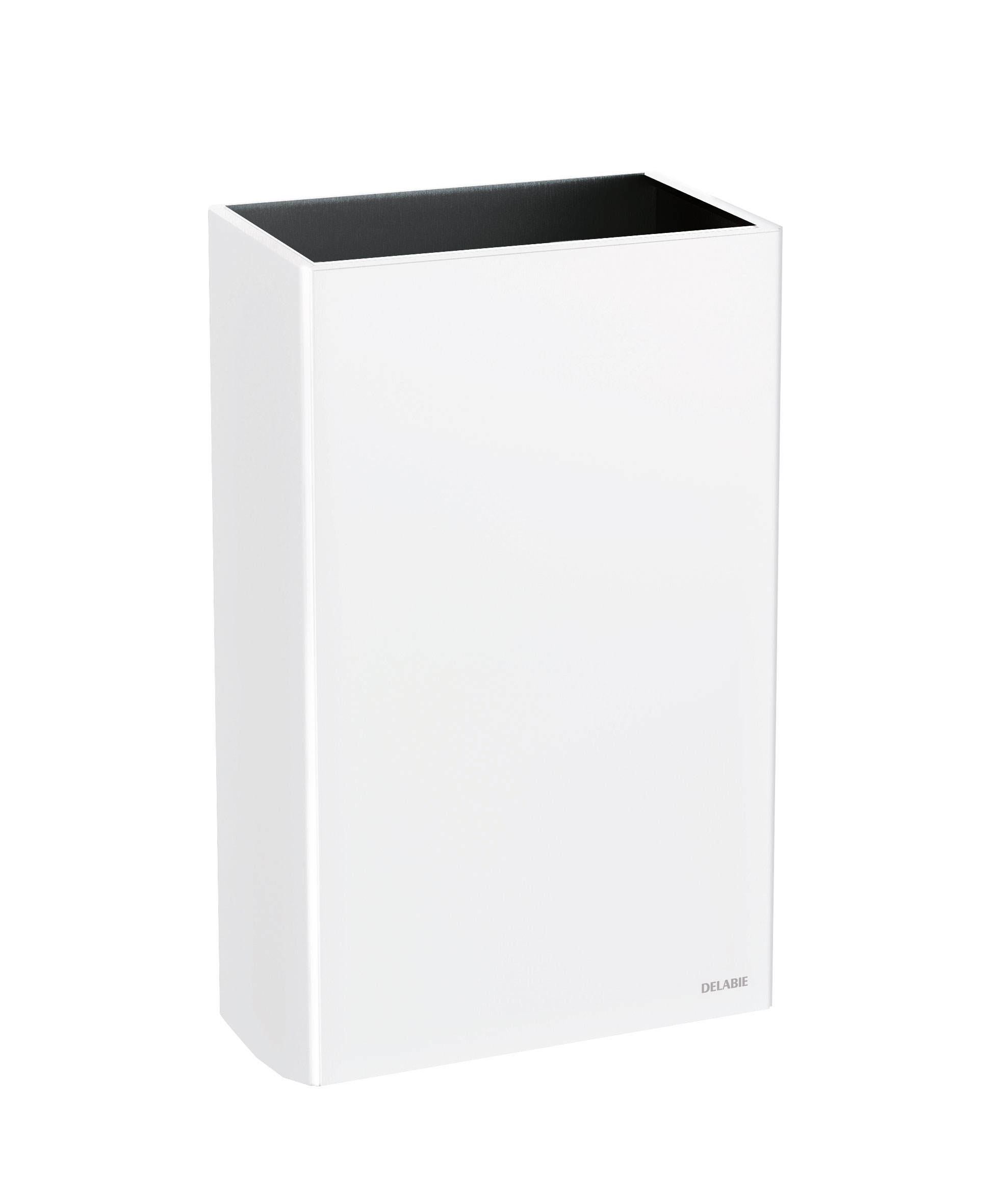 Ref. 510465WWall-mounted rectangular stainless steel bin for paper towels and waste paper.