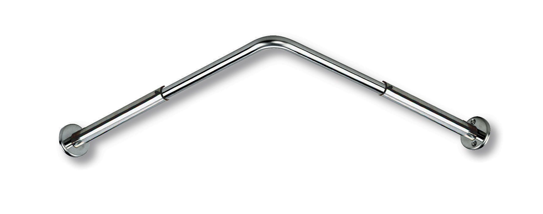 Angled rod for shower curtains made from bright polished 304 stainless steel.
