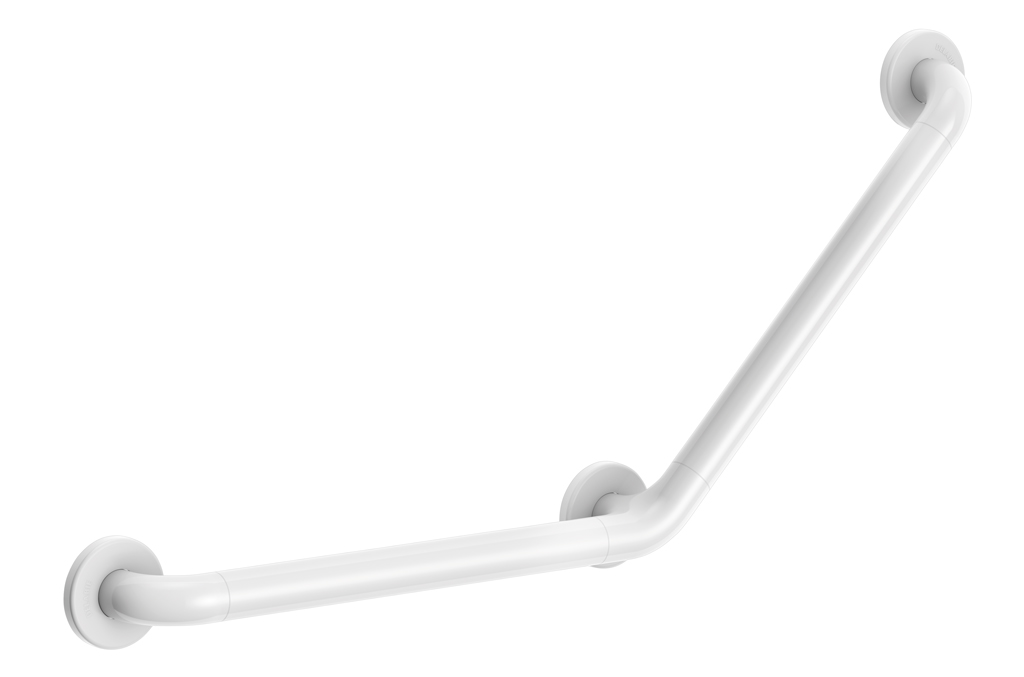 Angled Nylon grab bar 135°, white, anti-bacterial, 400 x 400mm
