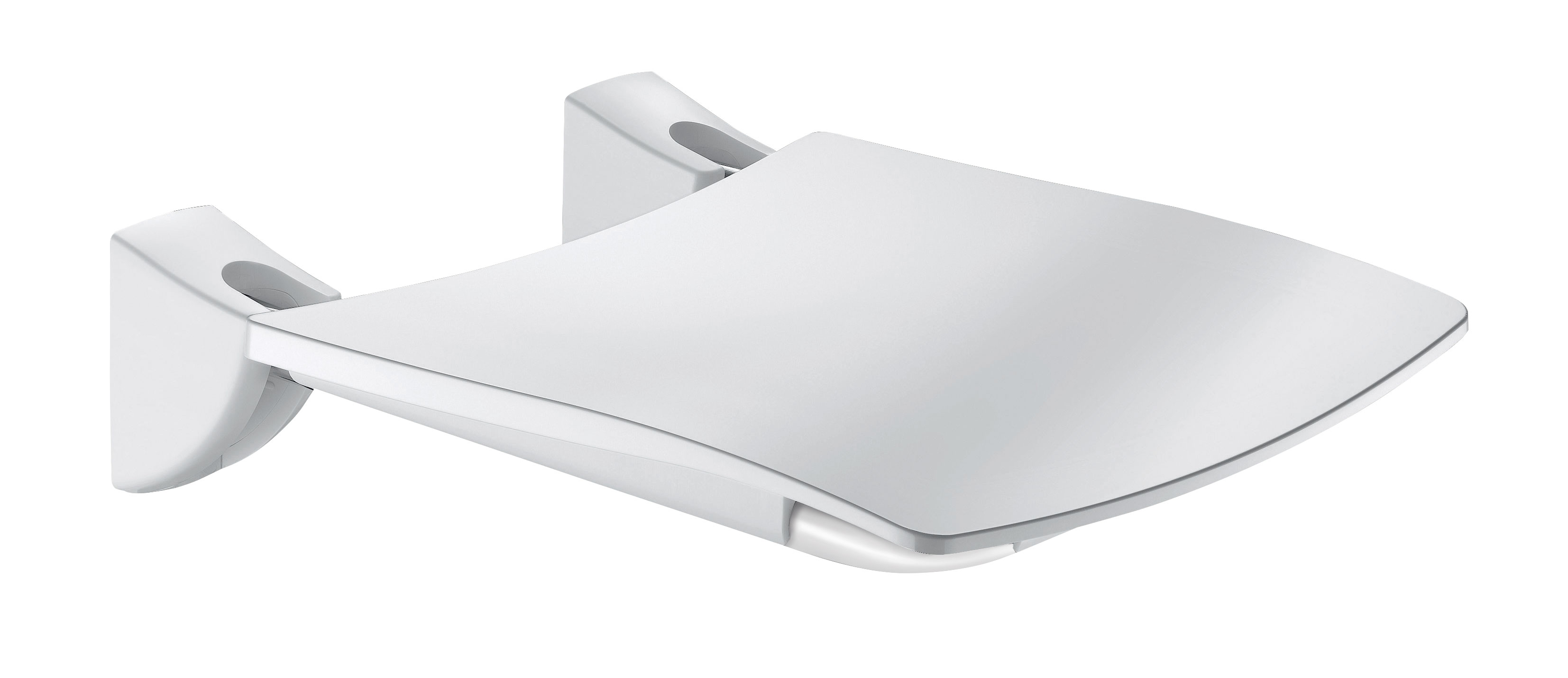 Wall-mounted lift-up shower seat for fixed installation.