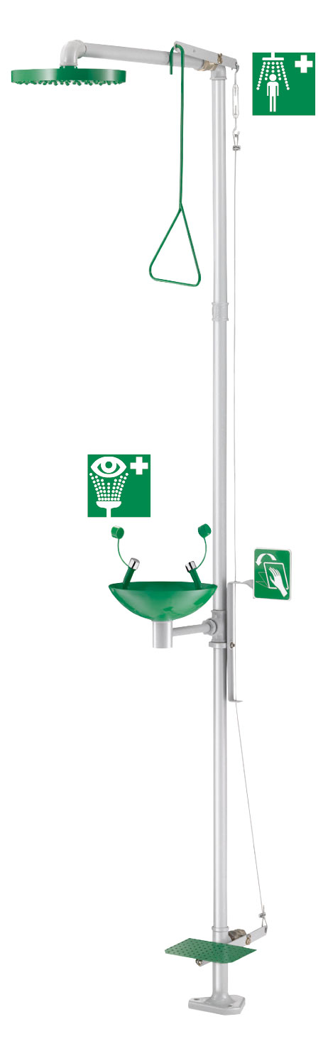 Supplied with identification signs for first aid equipment: "Safety Shower" and "Eye Wash".