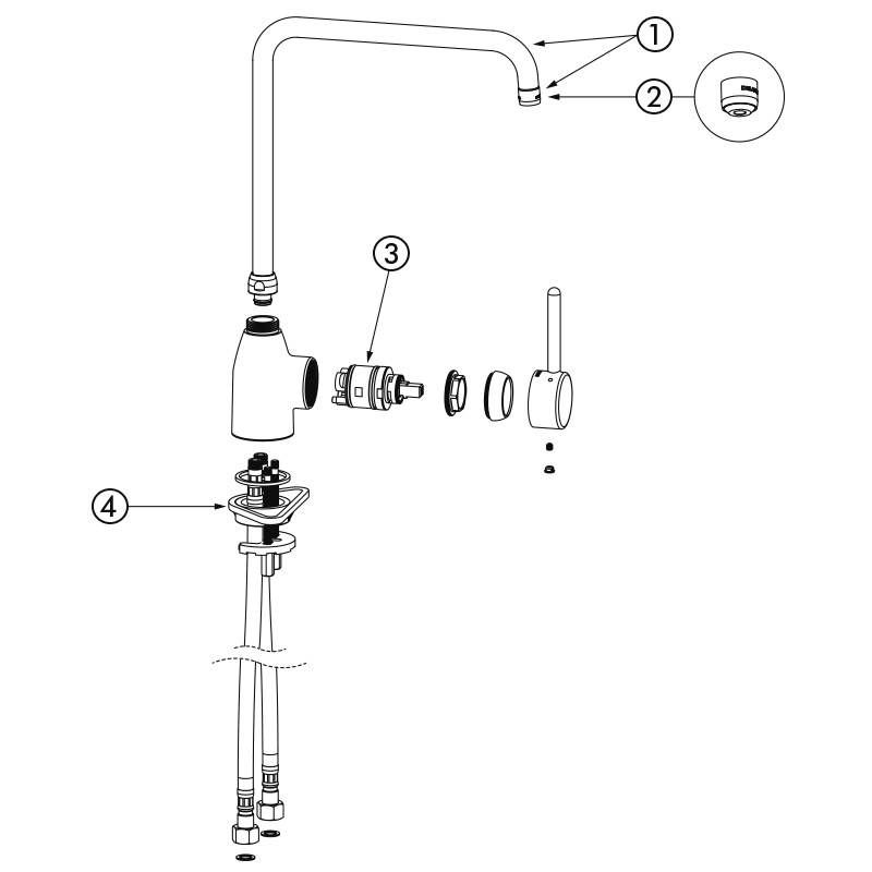 Swivelling tubular over spout L. 300mm H. 315mm