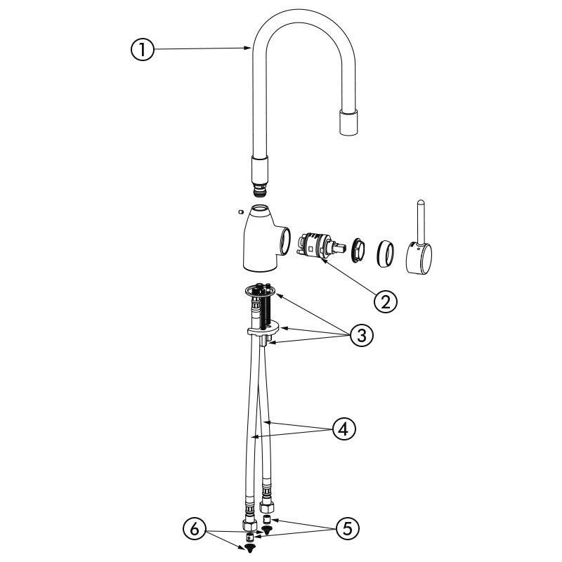 Ref. 2526T2Single hole deck-mounted mixer, flexible has no retainer, flexible H. 535mm maximum.