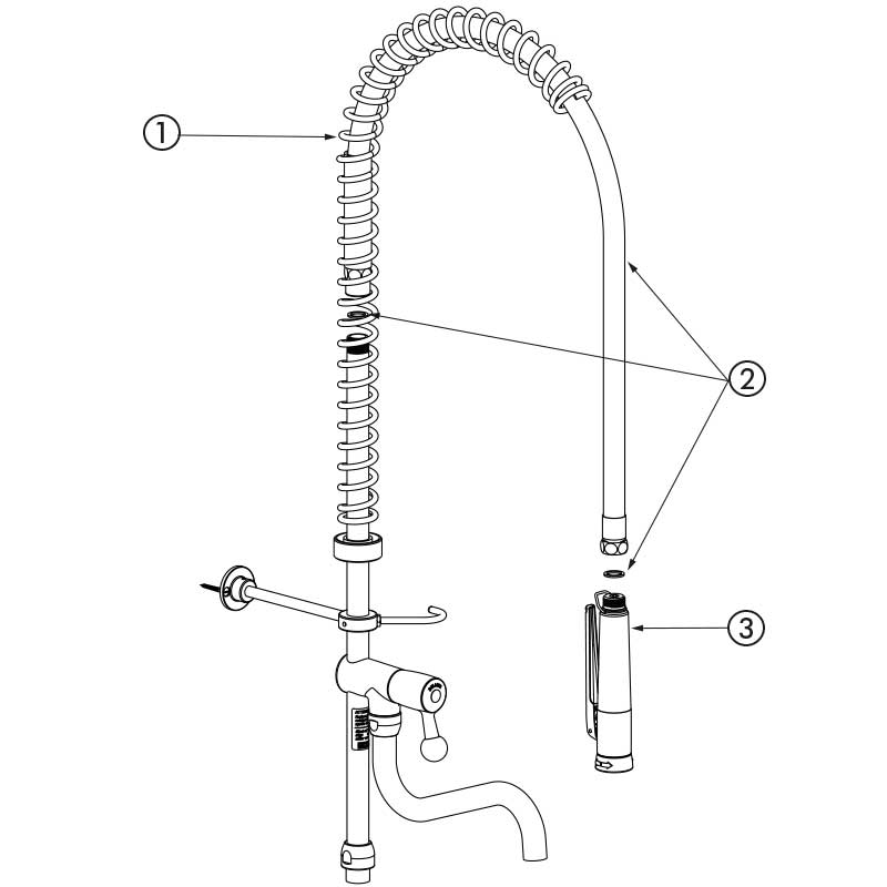 This pre-rinse set, with no water control valve, comprises spare parts for repairing pre-rinse sets.