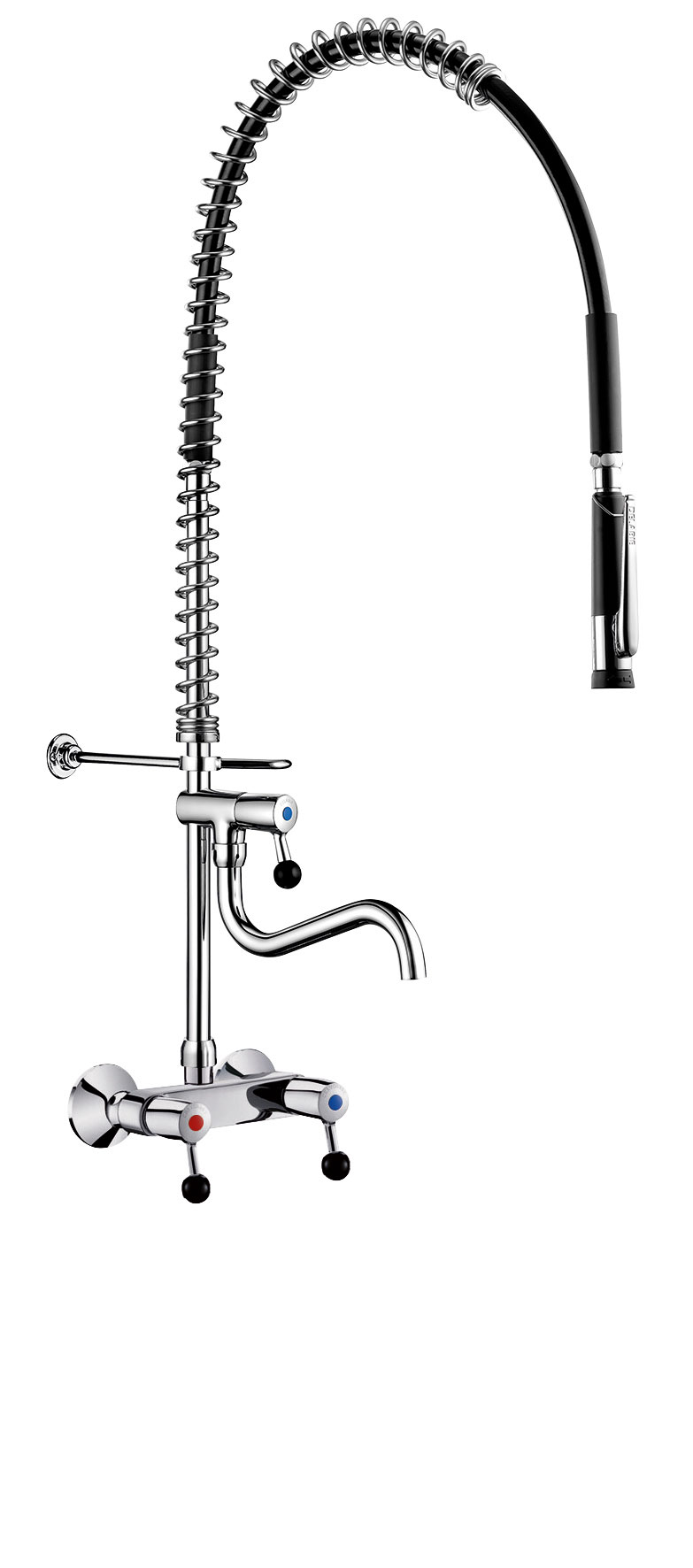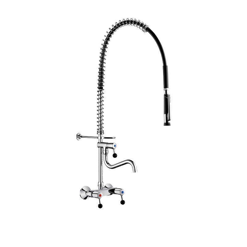Ref. 5634Complete pre-rinse set with bib tap suitable for intensive use in professional kitchens.
