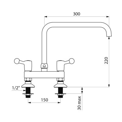 Ref. 5641T3Deck-mounted twin hole mixer, M1/2" with 150mm centres.