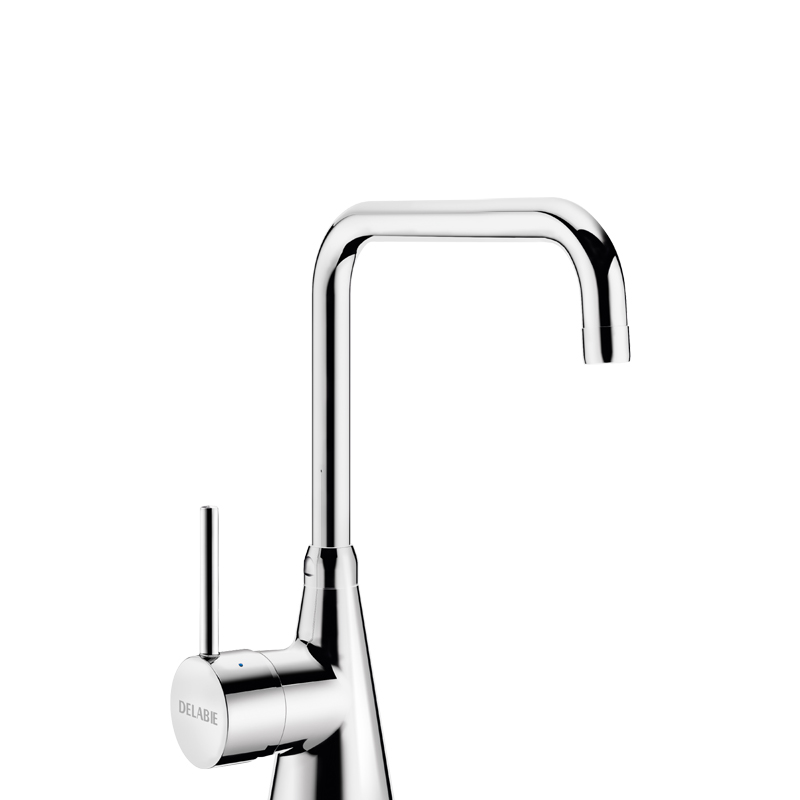 Swivelling tubular spout H. 255mm L. 200mm with hygienic flow straightener.
