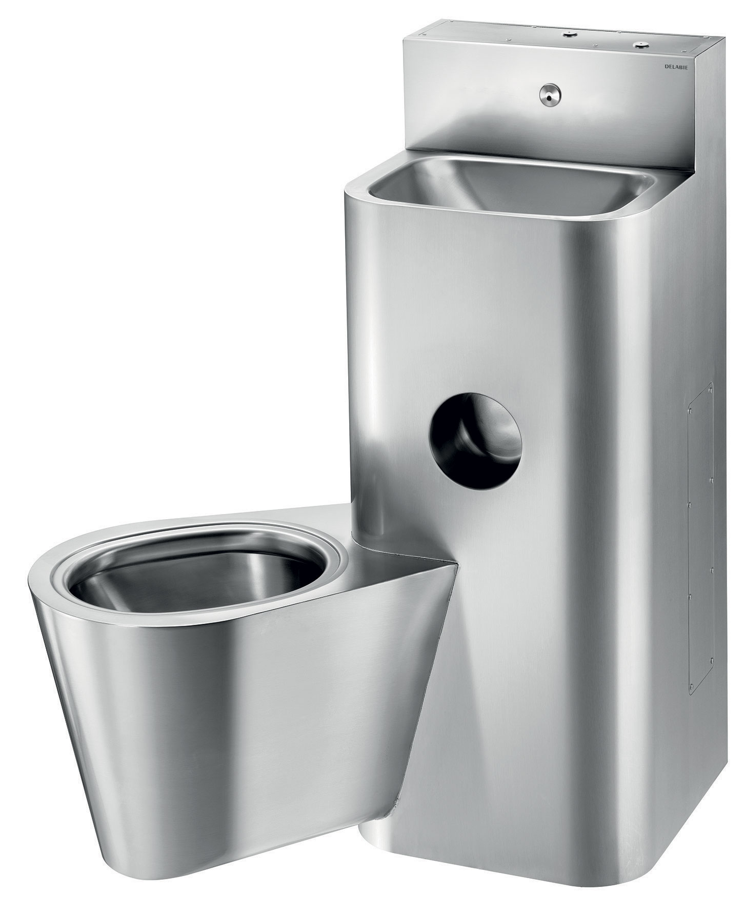 WC pan is completely welded to washbasin, no screws: makes cleaning easier and prevents concealment of objects.