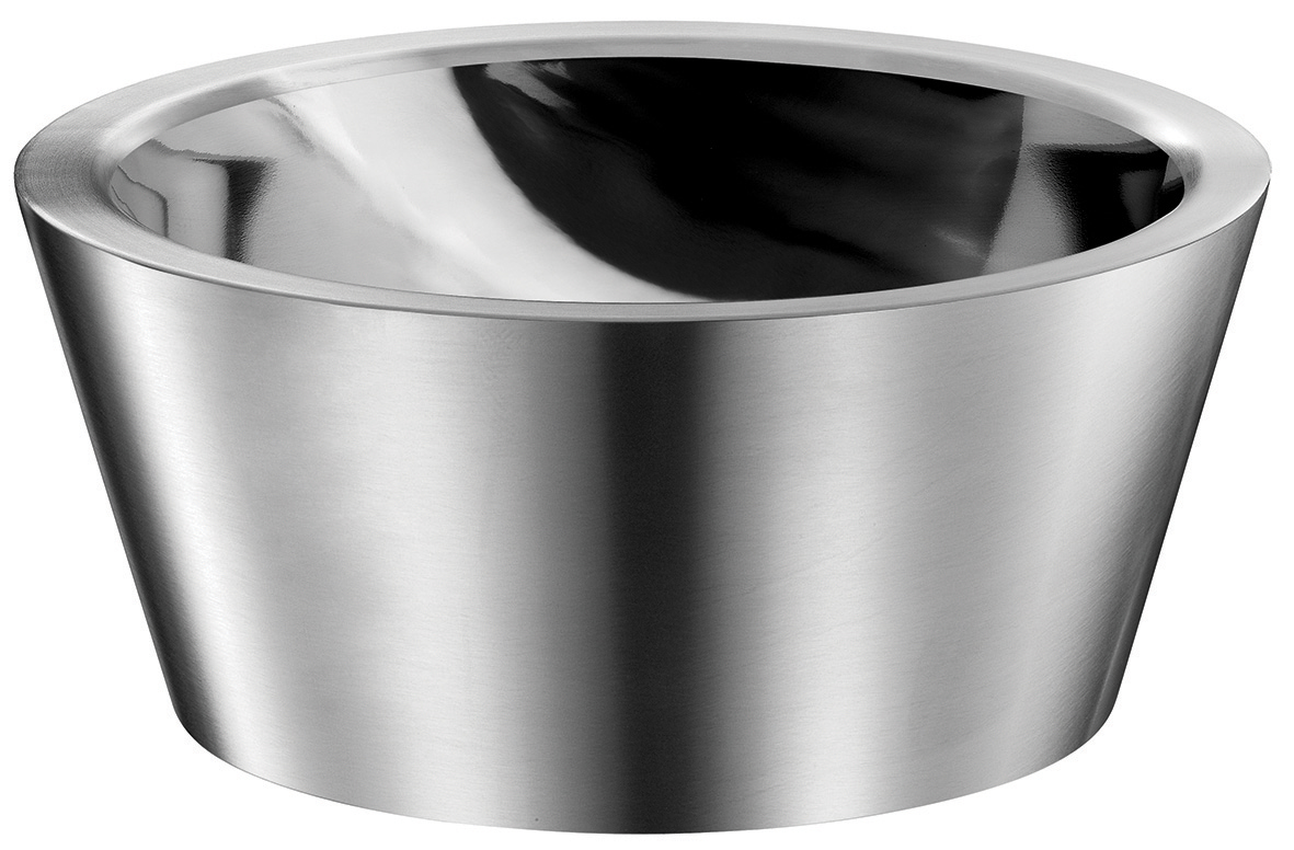 Dual finish: bright polished basin interior and polished satin exterior.