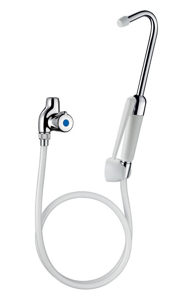 HYGIÉNA bed pan cleaner with standard hand spray with removable nozzle at a 65° angle.
