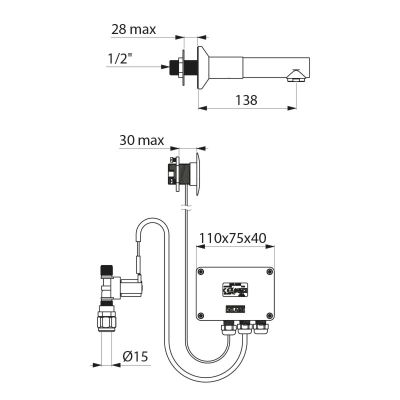 Infrared tap supplied with 2 removable stainless steel spouts L. 77mm.