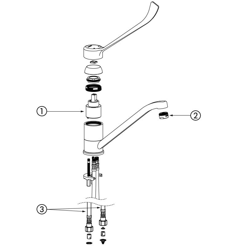 Ref. 2210LDeck-mounted mechanical sink mixer.