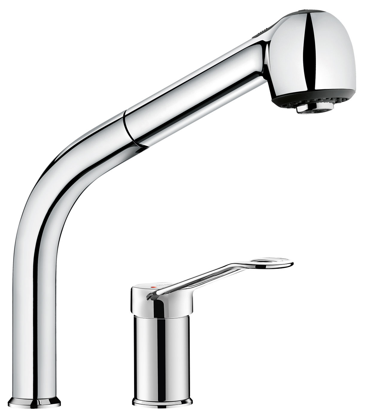Ref. 2599EPSink mixer with hand spray and column with retractable hand spray.