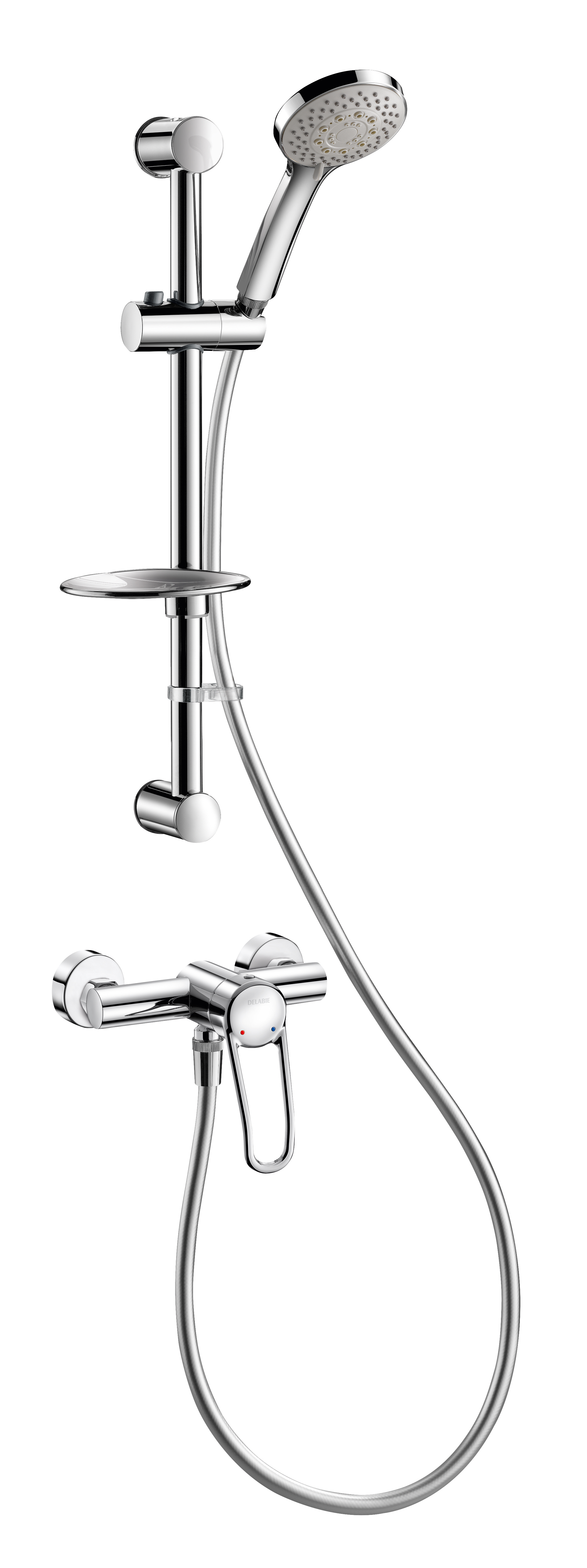 • Wall-mounted single control mixer with Securitouch thermal insulation to prevent burns.