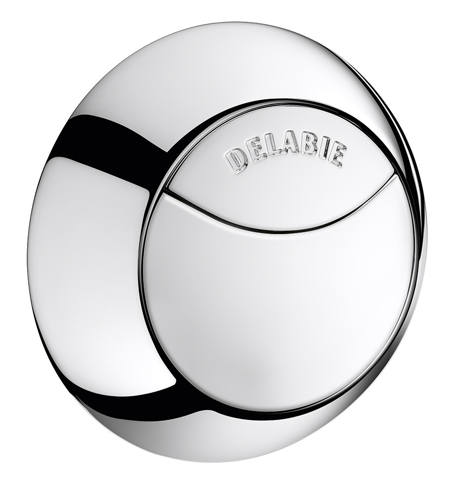 Chrome-plated metal push-button.