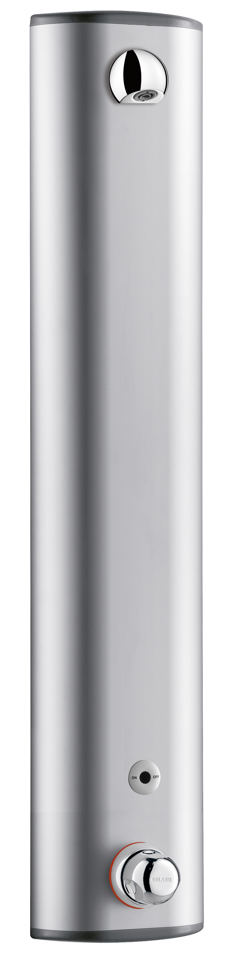 Anodised aluminium shower panel for wall-mounted, exposed installation.