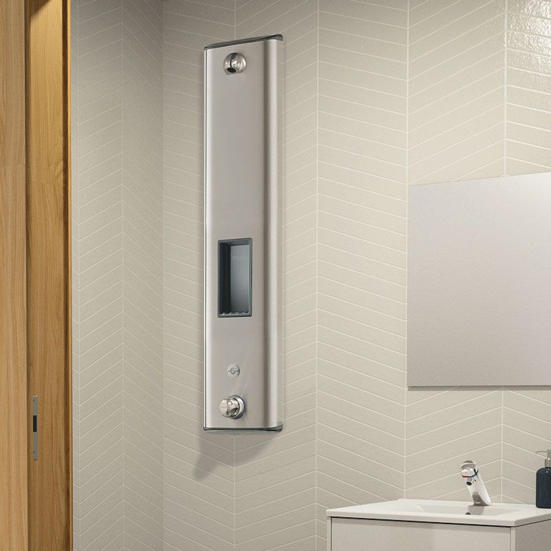 Large stainless steel panel for wall-mounted, exposed installation.