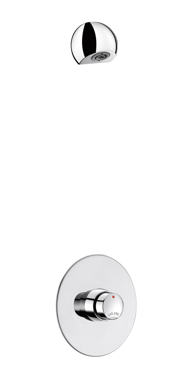 Chrome-plated, tamperproof ROUND shower head with scale-resistant nozzle and automatic flow rate regulation.