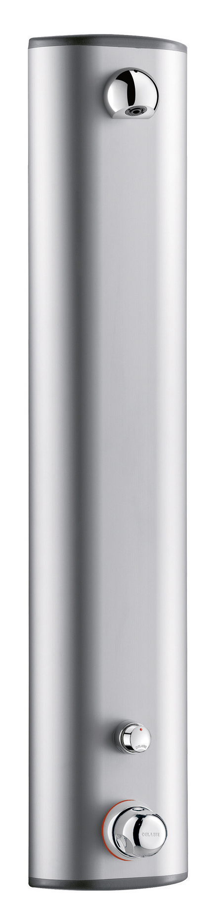 Anodised aluminium shower panel for wall-mounted, exposed installation.