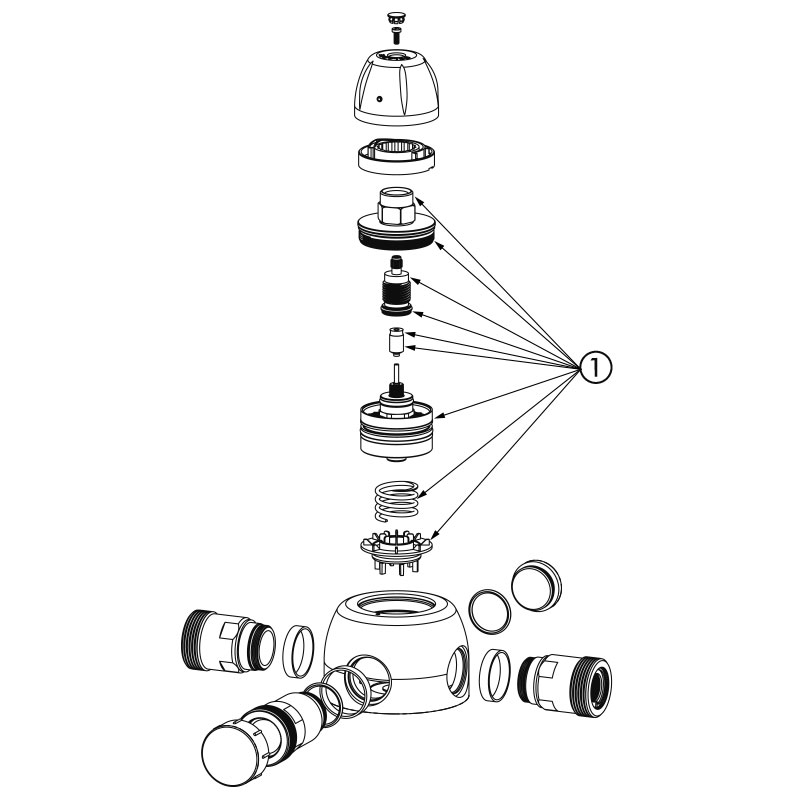 Ref. 731500Group thermostatic mixing valve for mixed water distribution from 32° to 42°C: